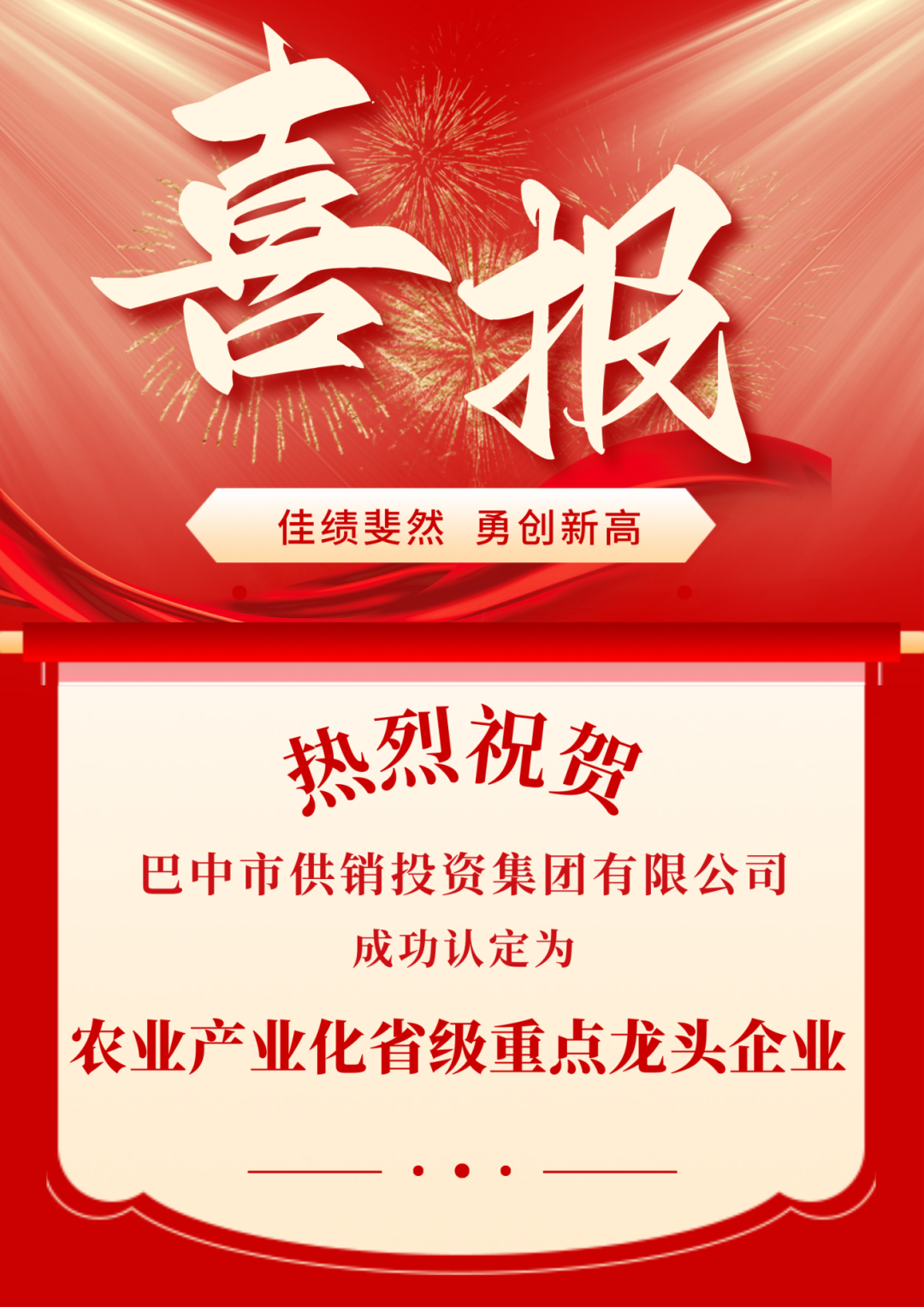 2024年12月27日,被四川省農(nóng)業(yè)農(nóng)村廳認定為農(nóng)業(yè)產(chǎn)業(yè)化省級重點龍頭企業(yè)。