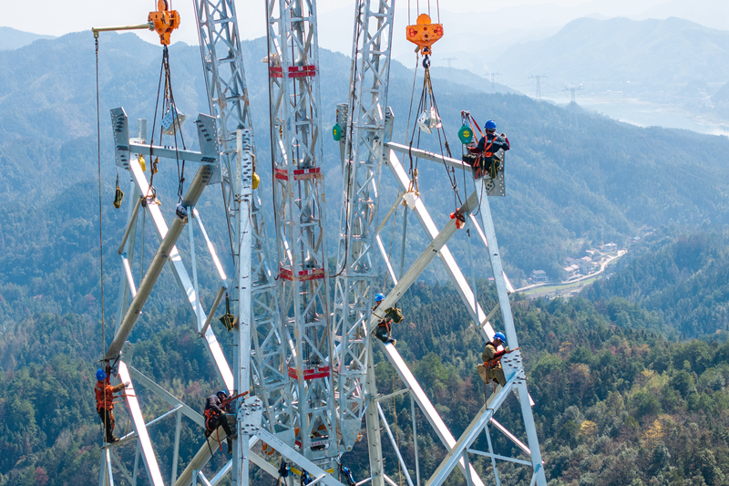 當(dāng)日,在湖南省益陽市安化縣冷市鎮(zhèn),湖南省送變電工程有限公司電力工人抓緊推進(jìn)“寧電入湘”工程組塔工作,力爭(zhēng)項(xiàng)目早日建成運(yùn)營。